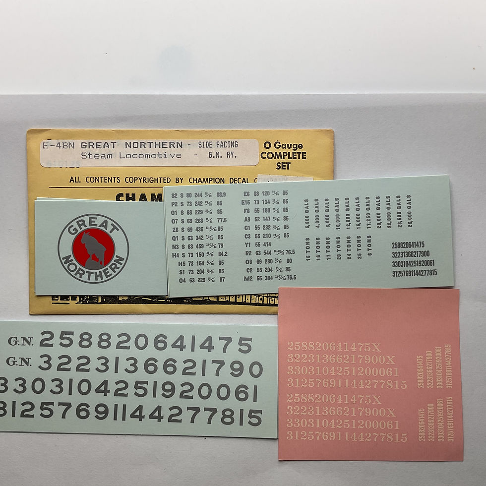 Decal Set, O Scale, GN Forward Facing Steam Locomotive, Champ # E-4AN