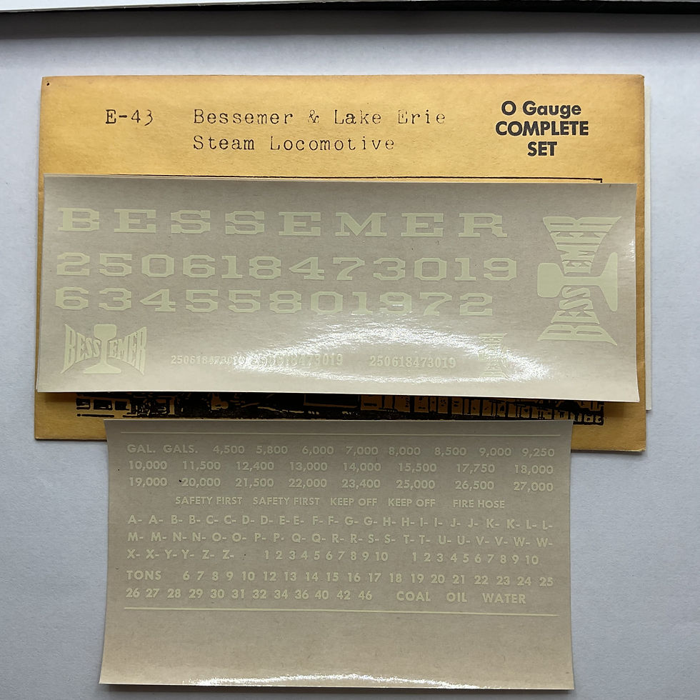 Decal Set, O Scale, Bessemer & Lake Erie Steam Locomotive, Champ # E-43